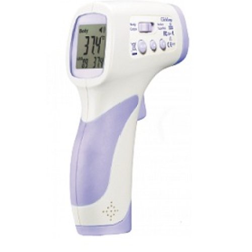 Clicktemp è un termometro ad infrarossi istantaneo (0,5 secondi per misurazione) senza contatto (distanza di utilizzo da 5 cm a 15 cm). È di facile uso e la temperatura può essere presa frontale o dietro all'orecchio. È indicato per tutta la famiglia ma soprattutto per i bambini in quanto è molto veloce, preciso e si può disattivare il segnale acustico se la temperatura viene rilevata durante il sonno. Può essere utilizzato nella modalità Superficie/Surface per la rilevazione delle temperature ambientali, del bagnetto e del biberon.Cod.2303529100M