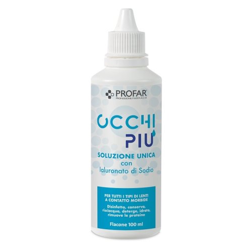 La soluzione Occhi più è indicata per la disinfezione, conservazione, pulizia, idratazione, risciacquo e rimozione dei depositi proteici per tutti i tipi di lenti a contatto morbide e colorate. Il polimero ialuronato di sodio, dalle elevate proprietà viscoelastiche, migliora la lubrificazione e la biotollerabilità delle lenti perché le mantiene costantemente idratate.