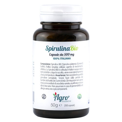 Spirulina BIO [Spirulina platensis (Gomont) Geitler], thallus singolae cellulae; agente di rivestimento: cellulosa.